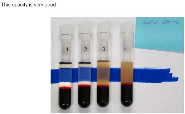 Vial 4 is opaque and cloudy