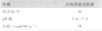 0引言 聚合物微凝膠[NingJiao]是最近發展起來的新型聚合物之一,是一種具有膠體尺寸(1~1000nm)且分子內交聯的聚合物顆粒。如果在聚合物微凝膠[NingJiao]的表面或內部帶有一定的具有反應[FanYing]活性的基團,即稱為反應[FanYing]性聚合物微凝膠[NingJiao][1-12]。微凝膠[NingJiao]的制備方法有乳液聚合(常規乳液聚合)、溶液聚合、無皂乳液聚合、微乳液聚合、分散聚合和沉淀聚合等[3-4]。由于乳液聚合方法簡單,得到的微凝膠[NingJiao]性能[XingNen]穩定,因此應用最廣泛。乳液聚合方法制備微凝膠[NingJiao]的關鍵是選擇合適的乳化劑,兩性離子型乳化劑的應用最多。 隨著人們環保意識的日益增加。高固體含量及水性成為發展的方向之一。由于微凝膠[NingJiao]是具有亞微結構的分子內交聯的聚合物顆粒,其分散液具有觸變性,用于中可以顯著改善的流變性能[XingNen],提高的固含量,微凝膠[NingJiao]還能改善涂層外觀,提高的機械性能[XingNen]及顏料在中的分散穩定性等[1,13-17]。國外,尤其是日、美、西歐等國已開發新品種使得微凝膠[NingJiao]在行業獲得廣泛的應用。國內在這方面的相關研究也取得了一定成績。 丙烯酸[BingXiSuan]樹脂[ShuZhi]是一種應用廣泛的樹脂[ShuZhi],由其配制的近年來發展很快[18]。但常規的丙烯酸[BingXiSuan]樹脂[ShuZhi]是溶劑型的,隨著其施工、應用,有大量的芳烴、酯或酮類溶劑進入大氣,造成嚴重的環境污染。本文通過自制兩性離子型表面活性劑的應用采用乳液聚合的方法制備了反應[FanYing]性丙烯酸[BingXiSuan]微凝膠[NingJiao],將其與水性三聚氰胺甲醛樹脂[ShuZhi]復配得到了水性氨基烘漆,與市場上廣泛應用的溶劑型丙烯酸[BingXiSuan]樹脂[ShuZhi]烘漆比較,綜合性能[XingNen]優異,可能在工業方面取代溶劑型相關產品,具有廣闊的應用前景。 1實驗部分 1.1試劑 兩性離子型表面活性劑(以下簡稱兩表):自制;二辛基磺化琥珀酸鈉(氣溶膠OT/Aerosol-OT/AOT)、聚乙二醇辛基苯基醚(OP-10):化學純,上海試劑工業研究所;碳酸氫鈉:化學純,上海豪申化學試劑有限公司;過硫酸銨:分析純,中國愛建試劑廠;N,N-亞甲基雙丙烯酰胺:化學純,上海潤捷化學試劑有限公司;丙烯酸[BingXiSuan]丁酯、丙烯酸[BingXiSuan]羥乙酯[YiZhi]、丙烯酸[BingXiSuan]:均為工業級,上海高橋丙烯酸[BingXiSuan]廠;水溶性甲醚化三聚氰甲醛胺樹脂[ShuZhi](Resimene717):工業級,上海邁坡羅貿易發展有限公司;鋁粉漿(d=42μm):常州希恩鋁業有限公司;溶劑型烘漆(雙組分高固體清漆):廣州偉昊技術開發有限公司。 1.2反應[FanYing]性丙烯酸[BingXiSuan]微凝膠[NingJiao]的制備 在錐形瓶中加入2.5gN,N-亞甲基雙丙烯酰胺、0.75gOP-10、32g丙烯酸[BingXiSuan]丁酯、配方設計質量的丙烯酸[BingXiSuan]羥乙酯[YiZhi]、配方設計質量的丙烯酸[BingXiSuan]和20mL去離子水等混合單體,用高速乳化機預乳化20min。在裝有攪拌器、冷凝管、恒溫水浴的三口燒瓶中,加入2.0g自制兩性表面活性劑、1.0gAerosol-OT、0.75gOP-10、0.25g碳酸氫鈉、60mL去離子水,攪拌并升溫至87℃。然后將預乳化后的混合單體移至滴液漏斗中滴加,2.5h左右滴加完成;同時在另一漏斗中滴加0.25g過硫酸銨和14.5mL去離子水混合液并控制在3h內加完。待物料全部加完,再保溫反應[FanYing]0.5h,乳液冷卻至室溫出料,然后過濾除去大顆粒凝膠[NingJiao],得白色帶藍光微凝膠[NingJiao]乳液。 1.3產品的技術指標 當丙烯酸[BingXiSuan]羥乙酯[YiZhi]用量[YongLiang]為7g,丙烯酸[BingXiSuan]用量[YongLiang]為0.5g時,微凝膠[NingJiao]乳液的技術指標見表1。 表1 微凝膠[NingJiao]乳液的技術指標