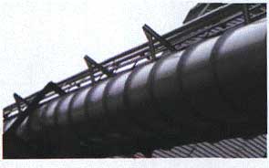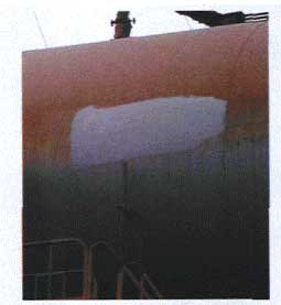 由圖4可知,添加[TianJia]納米 TiO2 對涂層[TuCeng]抗污染性有顯著改善, 表現為隨著納米 TiO2 量的增加,涂層[TuCeng]的沾污率顯著下降, 當添加[TianJia]量大于 0.25% 時, 涂層[TuCeng]表面[BiaoMian]幾乎不污染。 2.5 高光自潔漆現場應用測試 本文在自清潔[QingJie]漆試驗研究的基礎上 , 進行了首秦鋼鐵公司現場性能試驗, 圖 5 為小試產品現場涂刷 8 個月圖片 , 該產品具有較好的自清潔[QingJie]功能, 其中在有部分污染物的表面[BiaoMian]非常容易沖洗、沖刷;圖 6 為 200 k g 現場涂裝的Φ 2 m 工業管道之一的涂裝 5 個月圖片 , 表面[BiaoMian]仍光亮如新。