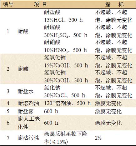 圖 6 自清潔[QingJie]漆 200 kg 工業用現場圖片 3 技術性能參數及理化性能 ( 見表 1 、表 2) 表 1 技術性能參數
