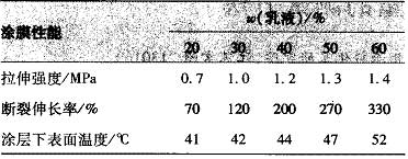 表 1 涂膜性能[XingNen] 3 結(jié)果與討論 3. 1 彈性丙烯酸乳液[RuYe]用量對涂膜性能[XingNen]的影響[YingXiang] 彈性丙烯酸乳液[RuYe]用量對涂膜性能[XingNen]的影響[YingXiang]見表 2 。 表 2 不同乳液[RuYe]含量時涂膜性能[XingNen]