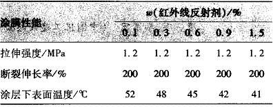 3. 4 涂層厚度對涂膜隔熱[GeRe]性能[XingNen]的影響[YingXiang] 涂層厚度對絕熱性能[XingNen]的影響[YingXiang]見表 5 。 表 5 涂層厚度對涂膜隔熱[GeRe]性能[XingNen]的影響[YingXiang]
