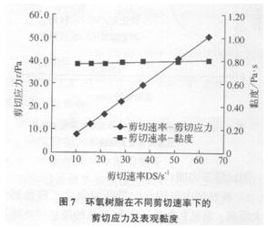 圖8為MMT質(zhì)量[ZhiLiang]分?jǐn)?shù)為5%預(yù)凝膠[NingJiao]剪切[JianQie]速率[SuLv]-剪切[JianQie]應(yīng)力[YingLi]及黏度曲線,預(yù)凝膠[NingJiao]經(jīng)80℃/6h預(yù)熱處理。專家介紹,MMT質(zhì)量[ZhiLiang]分?jǐn)?shù)的5%的預(yù)凝膠[NingJiao]剪切[JianQie]速率[SuLv]-剪切[JianQie]應(yīng)力[YingLi]回歸方程為y=5.174χ+7.6201,相關(guān)[XiangGuan]系數(shù)R2=0.9994,屬于假塑性流體,隨著剪切[JianQie]速率[SuLv]增大膠體黏度略為降低,平均黏度約為5.48Pa.s。 環(huán)氧樹脂 - www.ytfilter.com -(責(zé)任編輯:admin) |
