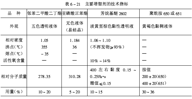“增塑劑”的主要技術(shù)指標(biāo)見表6-21。