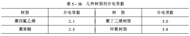 上式表明,基體的tanδ小,信號的傳播損失相應小。由此可見,作為高頻線路用的覆銅板,必須選用低介電常數和低介電損耗角正切的樹脂。但是,目前FR-4覆銅板用的環氧樹脂介電常數偏高,滿足高頻線路的使用有困難。幾種樹脂的介電常數對比如表5-38所示。