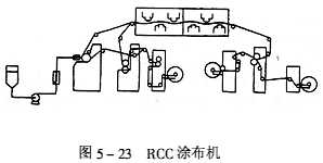 ![]() (3)RCC涂布工藝 RCC制造過程中要求將樹脂均勻地涂布在銅箔上。樹脂層的厚度偏差控制在±2mm以內。因此,必須采用高精度的涂布設備。同時,生產環境必須高度凈化。涂布機主要由涂布器和烘箱組成,如圖8-23所示。