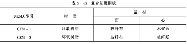 在環氧樹脂覆銅板中除上述玻纖布覆銅板外,另一類是復合基覆銅板(Composite Epoxy Material)。其主要產品型號如表5-40所示。