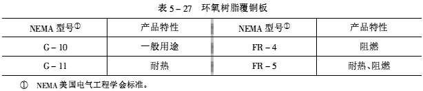 環(huán)氧樹脂覆銅板,是以玻璃纖維布作基材,浸以環(huán)氧樹脂為主體的粘結(jié)劑,經(jīng)加熱干燥,制成半固化狀態(tài)(或稱B階狀態(tài))的粘結(jié)片,單面或雙面覆上銅箔,經(jīng)加熱加壓而成的。環(huán)氧樹脂覆銅板主要產(chǎn)品型號如表8-27所示。