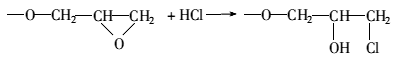 ![]() 在環(huán)氧樹脂中,不可避免地存在水解氯。由于水解氯的存在,使環(huán)氧樹脂的環(huán)氧基開環(huán)并與之結(jié)合,其存在形態(tài)如下