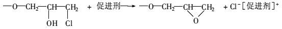 ![]() 上述反應(yīng)是閉環(huán)反應(yīng),它阻礙了環(huán)氧樹脂的開環(huán)聚合,導(dǎo)致樹脂的固化速度減慢。另一方面,游離的Cl-消耗了部分固化促進劑,也導(dǎo)致了固化促進作用的減小。
