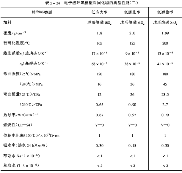 低應(yīng)力產(chǎn)品已經(jīng)成為封裝大規(guī)模集成電路的主要產(chǎn)品,其典型產(chǎn)品為日本住友的EME—6300系列、中科院化學(xué)所的KH850、KH930系列產(chǎn)品。其典型性能見表5-24。