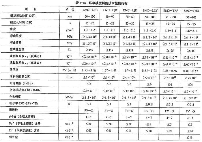 2.環(huán)氧模塑料的技術(shù)性能指標(biāo)