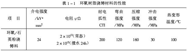 典型的環氧樹脂澆鑄絕緣材料的性能,見表1-1。圖1-1和圖1-2分別列出了環氧樹脂澆鑄的典型工藝及設備。