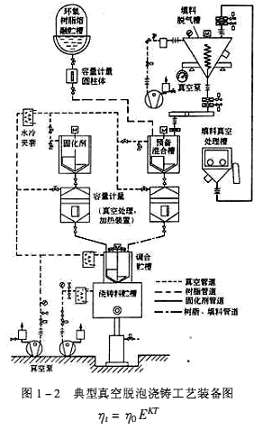 從上式可以得出,若要去除澆鑄料中的氣泡,澆鑄料應保持較長時間的低黏度。用抽真空的方法來擴大氣泡的直徑以加快脫泡的速度,所以要求澆鑄料的反應活性在脫泡溫度下很低,有較長的適用期。