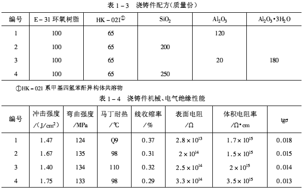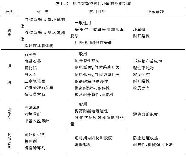 作為電氣絕緣澆鑄用的環氧樹脂組成見表1-2。