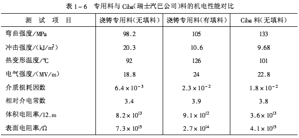 ![]() 這種專用料與瑞士Ciba公司料的性能對比見表1-6。