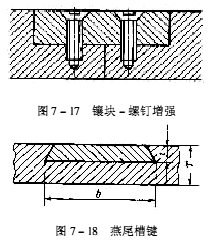 機械增強是最普通、最常用、最有效的方法,包括嵌波浪鍵、金屬扣合、鋼板增強、鑲塊、螺釘、鉚合、點焊、穿銷、套管、嵌入燕尾鍵、構織鐵絲網等。