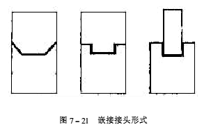 ![]() 如果是對接接頭,需要增大粘接面積,提高橫向承載能力,可采用各種嵌接形式,見圖7-21。