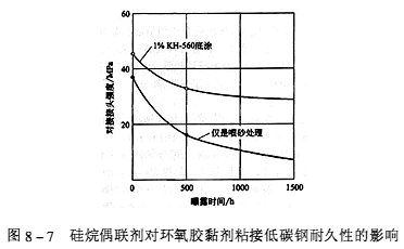 偶聯劑對于提高環(huán)氧膠黏劑粘接低碳鋼的耐久性很明顯,如圖8-7所示。