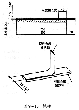 d.試樣如從膠接試板(見圖9-13)上切下時,應盡可能減少切削熱及機械力對試驗結果的影響。