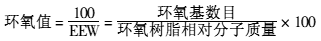 (2)環氧當量與環氧值 環氧當量(EEW)表示每一個環氧基團相當的環氧樹脂的質量,或者說是含1mol環氧基的環氧樹脂的質量(g),即