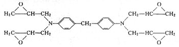 AG-80環氧樹脂為含氮環氧樹脂,化學名稱為4,4′二氨基二苯甲烷四縮水甘油胺,簡稱TGDDM,結構式為: