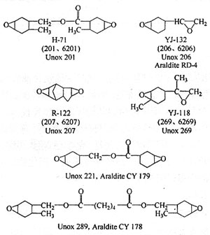 脂環族環氧樹脂又稱脂環族二環氧化物,是含有2個脂環環氧基的低分子化合物,環氧基是由不飽和脂環化合物的雙鍵以過氧化物(如過氧乙酸)氧化形成的,結構式為:
