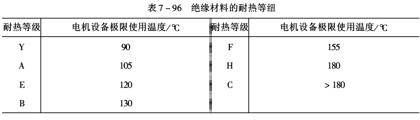 (3)按耐熱等級分類絕緣材料的耐熱等級見表7-96。