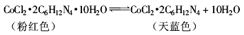 (3)失去結晶水 含有結晶水的物質加熱到一定溫度后會失去結晶水,從而引起物質顏色的變化,但冷卻后又吸收空氣中的水,會逐漸恢復原色。例如粉紅色的氯化鈷·六亞甲基四胺,在35℃時失去結晶水而變為天藍色: