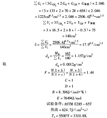 (1)結(jié)構(gòu)常數(shù)與線性燒蝕速率第四章中已經(jīng)介紹了有機聚合物的結(jié)構(gòu)常數(shù)K≈0.53δ(F+C+D),有機聚合物的線性燒蝕速率AR與(F+C+D)δ成反比。