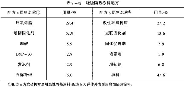 1.制備工藝燒蝕隔熱涂料配方見表7-42。