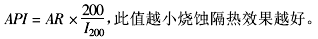 ④燒蝕性能指數(shù)API 燒蝕性能指數(shù)API(ablative perfor-mance index)是衡量涂層抗燒蝕性和隔熱性的綜合指標。