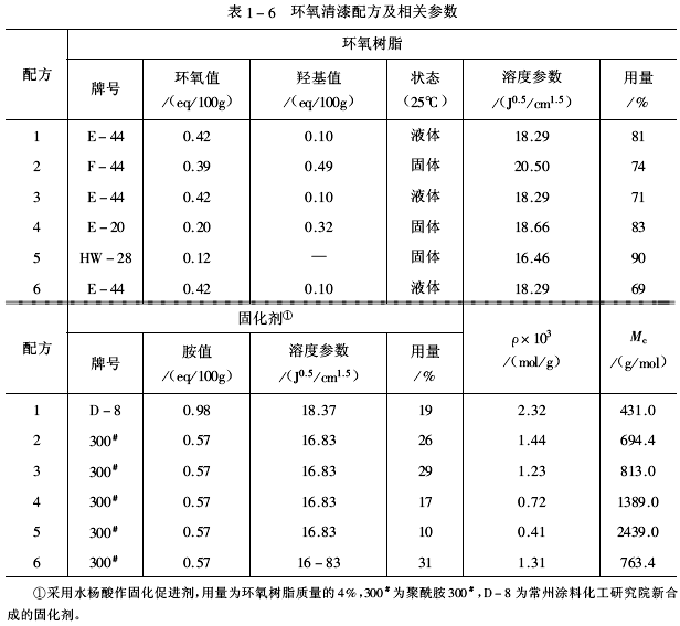 1.配方及滲透量環氧清漆的配方及滲透量見表1-6。