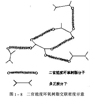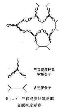 2.有效交聯密度環氧樹脂與固化劑交聯固化成網絡結構的涂膜,其交聯密度示意見圖1-7和圖1-8。
