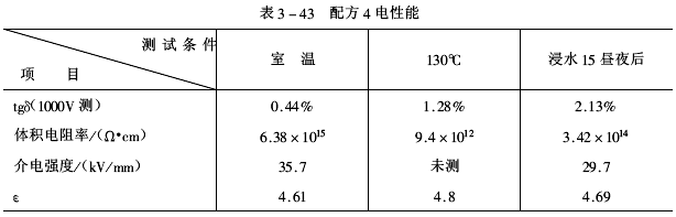 (b)電性能(漆膜固化條件160℃/14h)配方4的電性能見表3-43。