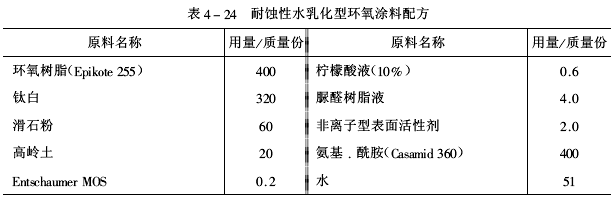 (1)耐蝕性水乳化型環氧涂料(見表4-24)