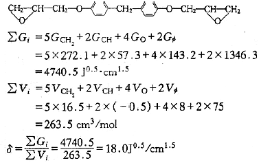ΣEi——聚合物重復單位中,i種基團對內聚能單獨貢獻的加和,J/mol;