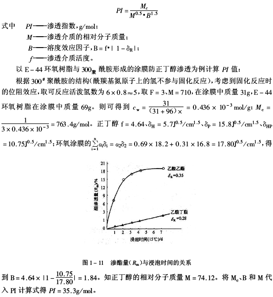 6.滲透量的計算水和醇對環氧涂膜的滲透量可用下式計算: