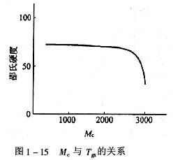 3.Mc與Tgx采用上述五種胺與環(huán)氧樹脂交聯(lián)固化成涂膜的玻璃化溫度為Tgx。其Tgx隨Mc增加而下降。結(jié)果如圖1-15所示。
