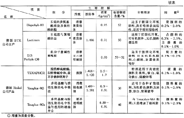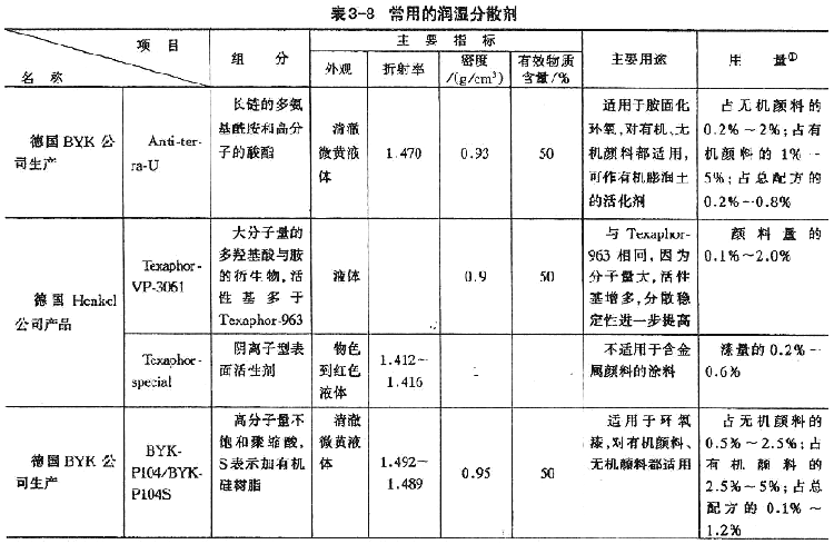 可供環氧涂料選用的潤濕分散劑見表3-8。