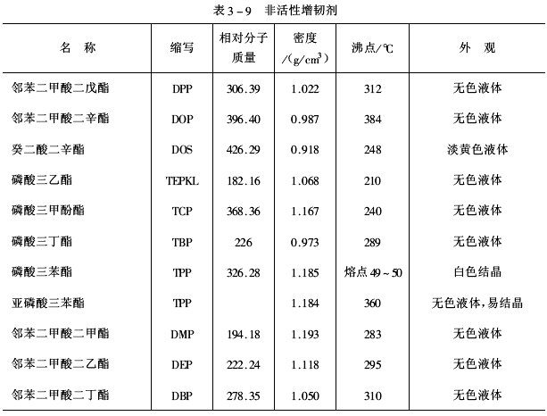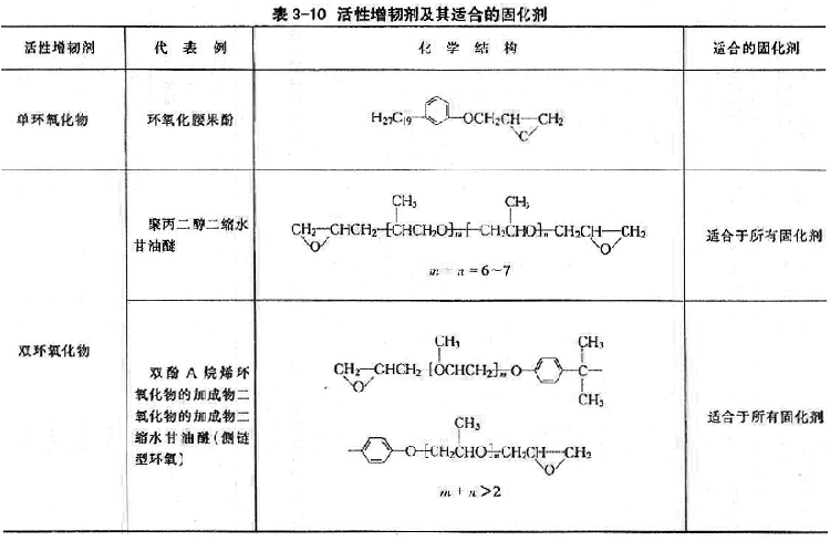 非活性增韌劑和活性增韌劑列于表3-9和表3-10。