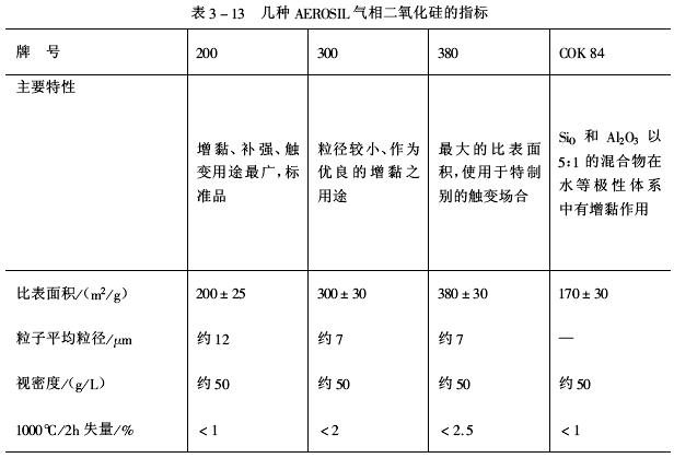 在伯胺、多氨基酰胺、未改性(或改性)脂環多胺中添加氣相SiO2可以獲得高的觸變性。在廣泛使用的環氧包封料和瀝青環氧防腐蝕涂料組分中(含有環氧樹脂和多元胺加成物的體系)加入氣相SiO2能夠獲得高的觸變性。