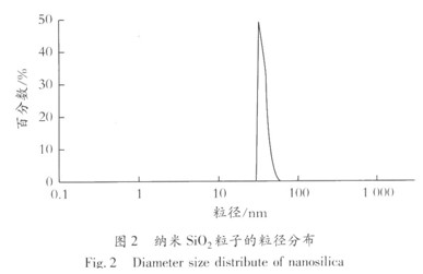 由圖l(a)可見, 圖2是無交聯劑制備出的納米二氧化硅粒徑分布圖。