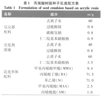 摘要:聚苯胺是一種導電分子,聚苯胺涂料因其性價比較高而被看作是新一代環境友好型的高效防腐涂料。本研究以過硫酸銨為引發料,十二烷基苯磺酸鈉為乳化劑,采用乳液聚合法制備丙烯酸樹脂乳液。分別采用乳液互穿網絡聚合法和乳液共混法制備聚苯胺—丙烯酸樹脂防腐涂料,并利用紅外顯微鏡技術分析聚苯胺在聚苯胺—丙烯酸樹脂防腐涂料中的分散性。涂層在馬口鐵上腐蝕電位和極化曲線的測試結果表明,采用乳液互穿網絡聚合法制備的聚苯胺—丙烯酸樹脂防腐涂層在w(NaCl)溶液中的開路電位比乳液共混法升高了0.596V,自腐蝕電流降低了1個數量級。 關鍵詞:聚苯胺,丙烯酸樹脂,防腐蝕,乳液,紅外顯微鏡 在眾多的導電高分子材料中,聚苯胺因其結構的多樣化、獨特的摻雜機制、良好的環境穩定性等諸多優異的物理化學性質,一躍成為當今導電高分子研究的熱點和推動力之一,已被廣泛地應用于各種領域[1-3]。其中,將聚苯胺用作防腐涂料以及研究其防腐蝕機理倍受人們的廣泛關注,因此,對聚苯胺及其復合物的研究具有非常重要的意義和廣闊的應用前景,被認為是目前最有希望獲得實際應用的導電高分子[4-6]。聚苯胺復合防腐涂層的制備方法主要有以下2種[5-7]:一是在聚苯胺涂層上涂覆面漆,與聚苯胺形成復合涂層;二是將聚苯胺粉末與其他聚合物成膜基料(如環氧樹脂、丙烯酸樹脂等)共混形成防腐涂層。這2種途徑都將使最終涂層體系的防腐性能得到極大的提升。其中第二種方法是目前研究聚苯胺防腐性能和機理應用最多的方法,并且大量研究表明聚苯胺與樹脂共混制備的防腐涂料不但具有陽極保護作用而且附著力和對水的屏蔽作用都優于前一種方法。丙烯酸樹脂乳液具有相對分子質量大、干燥成膜快、對于多種基材粘接性能好、透明度高、耐候耐水性好和無污染等優點。將聚苯胺與丙烯酸樹脂類乳液共混復合改性,可有效改善聚苯胺的溶解性、加工性,擴大其在涂料中的應用,有效發揮其防腐作用[8]。本研究用乳液法制備丙烯酸樹脂乳液,經過改性后,向其中加入苯胺單體進行乳液互穿網絡聚合。利用先進的紅外顯微鏡技術分析聚苯胺在丙烯酸樹脂中的分散性,用開路電位、極化曲線等電化學方法研究聚苯胺一丙烯酸樹脂復合涂層在馬口鐵表面的防腐性能。 l 實驗部分 1.1 實驗用原料 苯胺(ANI):天津市東麗區天大化學試劑廠,使用前經過二次蒸餾后使用;碳酸氫鈉:上海虹光化工廠;十二烷基苯磺酸鈉(LAS)、十六醇:天津市東麗區天大化學試劑廠;5-磺基水楊酸(SSA):天津市富宇精細化工有限公司;丙烯酰胺(AM)、甲基丙烯酸甲酯(MMA)、丙烯酸丁酯(BA)、苯乙烯(St)、甲基丙烯酸(MAA)、過硫酸銨(APS):天津市科密歐化學試劑有限公司,使用前經過減壓蒸餾除去阻聚劑。以上試劑均為分析純。 1.2丙烯酸樹脂種子乳液的制備 本實驗采用過硫酸銨為引發劑,十二烷基苯磺酸鈉為乳化劑,采用乳液聚合方法制備丙烯酸樹脂種子乳液。種子乳液的反應器配料、乳化單體配料以及引發劑溶液組成如表1所示。