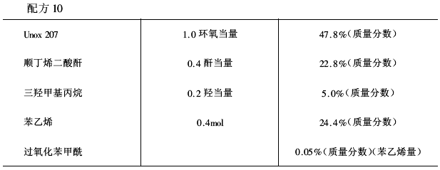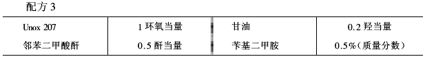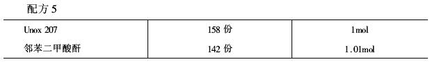 (二)二氧化雙環(huán)戊二烯的固化及應(yīng)用 (1)Unox 207的固化環(huán)氧化合物UD-OX 207在沒有引發(fā)劑存在下與酸酐反應(yīng)是非常慢的,它不像雙酚A環(huán)氧樹脂中因分子鏈內(nèi)有羥基而反應(yīng)很快。