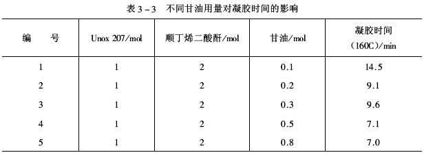 該反應(yīng)在有機酸(RCOOH)存在時而加速。 對于多元醇的用量方面。鄧先模、黃志鏜做了實驗,他們是用甘油代替三羥甲基丙烷,試驗結(jié)果如表3-3,圖3-3所示。由此可見羥基當量用環(huán)氧當量的0.15~0.3為宜。