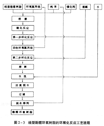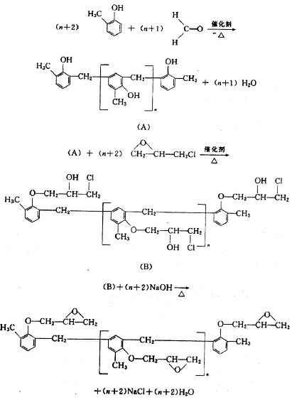一、工藝技術路線的選擇 鄰甲酚甲醛環氧樹脂(ECN)的合成路線,國外大都采用鄰甲酚與甲醛在酸性催化劑的存在下,縮聚而成的鄰甲酚甲醛樹脂,然后該樹脂在催化劑的存在下與環氧氯丙烷反應,生成鄰甲酚甲醛環氧樹脂的路線。該工藝技術路線具有合成工藝簡單、對設備要求低、產品質量穩定、容易操作等優點,并適宜大規模生產。 二、化學反應機理 根據上述反應路線化學反應可分成3個階段,第一階段,鄰甲酚和甲醛兩個單體在催化劑存在下,以水為分散介質,在攪拌下形成液% 液懸浮均一體。在一定的溫度條件下,進行縮聚反應,生成線型結構的鄰甲酚甲醛樹脂[即所謂Novolak樹脂(酚醛清漆樹脂)]。第二階段,該Novolak樹脂在催化劑存在下與超量的環氧氯丙烷在一定的溫度條件下起開環醚化反應,生成開環醚化物。第三階段,這種開環醚化物在NaOH的作用下脫去HCl閉環生成我們所需要的線型鄰甲酚甲醛環氧樹脂。其反應式如下: