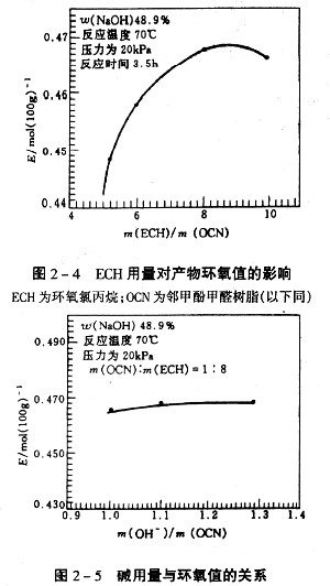 成品樹脂的分子量和軟化點可以通過鄰甲酚與甲醛的配比,采用適當的催化劑用量和濃度,以及適當的反應時間等來控制。 此外采用純度較高的鄰甲酚為原料是至關重要的。高純度的鄰甲酚作原料從理論上根本保證了縮聚反應所得的樹脂為線型結構的Novolak樹脂。因為鄰甲酚通常只有2個活化反應點,甲醛也屬雙官能度的單體,因此即使在甲醛過量的情況下,理論上也只能形成線型結構的Novolak樹脂。這樣不但反應所得的樹脂純度高,而且有效地避免了膠聯的危險性。 三、三廢處理及綜合利用 在鄰甲酚甲醛環氧樹脂的合成過程中,三廢主要產生在合成鄰甲酚甲醛樹脂的水洗過程中。其性質是含有微量的酚和醛以及低濃度的酸水。 鄰甲酚甲醛樹脂反應結束,母液可以放在下一次投料中循環使用。以后各次水洗所產生的廢水,集中收集,一般每生產1t鄰甲酚甲醛環氧樹脂產生8.5t廢水。其各組分的含量大致如下: 含酚量 1.76~2.8mg/L 含醛量 0.26%~0.75%(質量分數) 酸 度 0.06%~0.19%(質量分數) 化學耗氧量(COD) 3000~15000mg/L 對于這種含酚廢水可集中統一處理。處理的方法是在混合酚中加入過量的甲醛在酸性催化劑存在下,反應生成交聯樹脂。使廢水達到排放標準。 四、成品鄰甲酚甲醛環氟樹脂的主要技術指標 外觀 淡黃色至棕色透明固體 軟化點 75~90℃(環球法) 環氧值 0.42~0.50mol/100g(鹽酸-丙酮法) 為了制得高純度低氯離子含量的鄰甲酚甲醛環氧樹脂,以滿足集成電路用塑封材料(對于保護電子元件免受環境腐蝕,提高使用壽命)的要求,李寶芳,董耿蛟研究了工藝條件與產物氯離子含量、環氧值的關系及其合成規律(見圖2-4)。發現原料配方,堿用量對氯含量影響較大(見圖2-5),反應時間和原料配比的增加可使環氧值增大。結果得到了可水解氯含量小于500μl/L的高純度鄰甲酚甲醛環氧樹脂。 閉環反應條件和產物環氧值、可水解氯含量的關系見圖2-6及圖2-7。 |