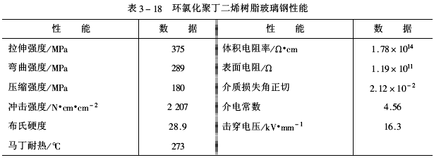 用表3-16的配方作為玻璃鋼的組成,在如下條件下壓制成制品:80℃/0.5h(0.5MPa)+120℃/0.5h(2MPa)+160℃/2h(3MPa)。 后固化條件:160℃/4h,所得到的玻璃鋼性能如表3-18。