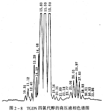 TGDN一般商品501C時的黏度為12000mPa·s,而用分子蒸餾法和制備高性能液相色譜法離析的純TGDN,50℃時的黏度為1100mPa·s。因此,在TGDN的商品中,明顯地含有高黏度的分子量高的齊聚物。原來以為這些分子量較高的齊聚物之所以產生,是因為在最后高溫蒸餾的過程中,游離的NH與環氧基發生反應的結果。但是,在用高壓液相色譜跟蹤該反應過程時,發現情況并非如此。用高壓液相色譜分析剛好發生閉環反應之前的氯代醇的組成,分析結果表明已經生成大量的分子量高的齊聚物。因此,在加入環氧氯丙烷的過程中,生成高分子量的齊聚物的過程(advancement process)就已經發生,并認為這是由于氯代醇與游離胺發生反應的結果,如反應示意圖2-8。
